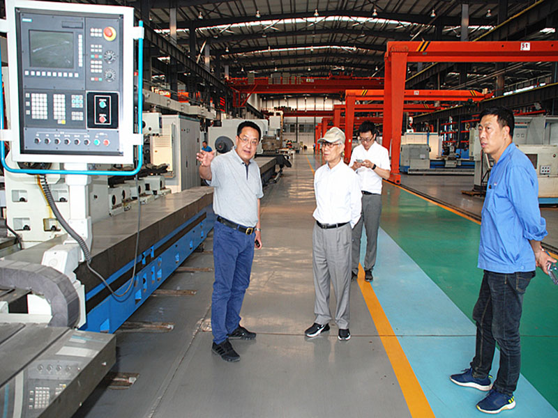 朱森第輕車簡從,來到星火機床公司后直接深入生產現場參觀調研。在蔣保權的陪同下,朱森第先后在公司工業園各分廠和本部主要分廠參觀調研。參觀調研中,蔣保權詳細介紹了公司發展歷程和變化、工業園建設情況、國內外子公司生產經營和企業目前現狀,以及今后發展設想等工作。朱森第重點了解了公司生產的各種重型、大型、精密機床和專用機床的性能、技術水平、銷售市場,以及產品研發生產能力和智能制造方面取得的效果。