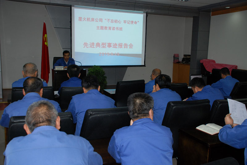 按照《中共天水市委關(guān)于開展“不忘初心 牢記使命”主題教育的實(shí)施方案》要求,星火機(jī)床公司自9月16日開始的為期一周的主題教育讀書班各項(xiàng)學(xué)習(xí)活動正在如火如荼的開展。按照學(xué)習(xí)計(jì)劃,每天上午、下午,星火機(jī)床公司 “不忘初心 牢記使命”主題教育讀書班定時(shí)開展形式多樣的學(xué)習(xí)活動。自9月17日、9月18日組織讀書班成員觀看警示教育片、《建國大業(yè)》革命傳統(tǒng)教育專題片后,9月19日上午,星火機(jī)床公司“不忘初心 牢記使命”主題教育讀書班在大會議室舉辦了先進(jìn)典型事跡報(bào)告會。