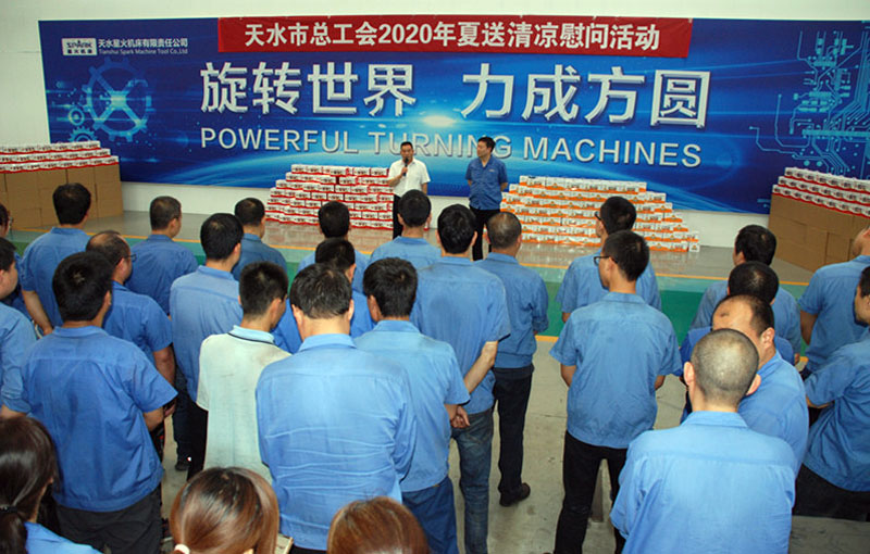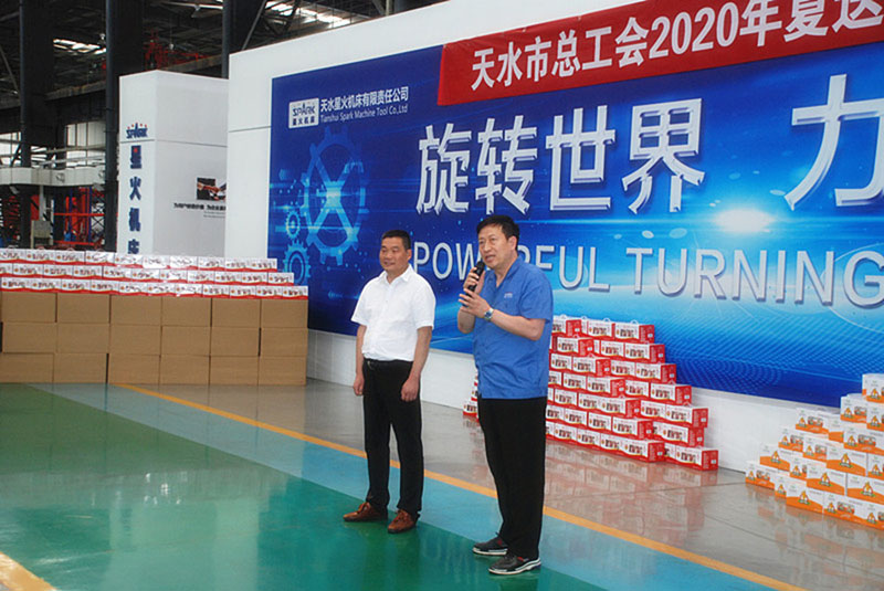 在星火機(jī)床公司工業(yè)園慰問(wèn)活動(dòng)現(xiàn)場(chǎng),何付忠講話指出,我受市委市政府、市總工會(huì)委托,今天來(lái)星火機(jī)床公司開(kāi)展2020年夏送清涼慰問(wèn)活動(dòng)。這是市總工會(huì)多年堅(jiān)持開(kāi)展的一項(xiàng)活動(dòng),充分體現(xiàn)了市委市政府、市總工會(huì)對(duì)企業(yè)職工的關(guān)心和關(guān)愛(ài),以及貫徹落實(shí)“人民至上、生命至上、健康至上、安全至上”的理念。今年是極不尋常的一年,疫情、災(zāi)情嚴(yán)重影響了經(jīng)濟(jì)發(fā)展,作為企業(yè),要提高政治站位,引導(dǎo)職工牢固樹(shù)立“四個(gè)意識(shí)”,增強(qiáng)“四個(gè)自信”,努力完成“六穩(wěn)”“六?!比蝿?wù)。同時(shí),要教育職工增強(qiáng)防范意識(shí),做好疫情防控和防暑降溫工作,保障職工生命安全和身心健康,為公司圓滿完成生產(chǎn)任務(wù)做出應(yīng)有貢獻(xiàn)。