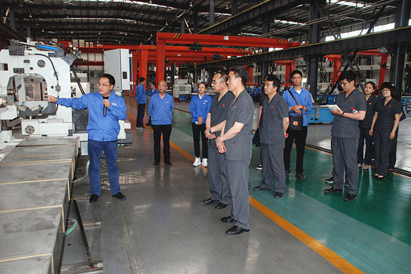 在星火機床集團公司領導陪同下,天水市中級人民法院領導、法官一行,先后深入工業園各生產現場和公司本部部分單位,參觀了生產現場、機床產品和公司展廳。