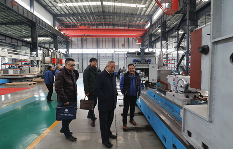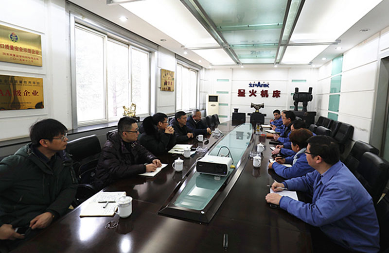 韓少平、鞏朝陽一行首先參觀了生產現場,觀看了公司研發生產的各類數控精密機床產品及公司展廳,聽取了蔣保權等關于產品性能、研發生產、公司發展歷程的介紹。
