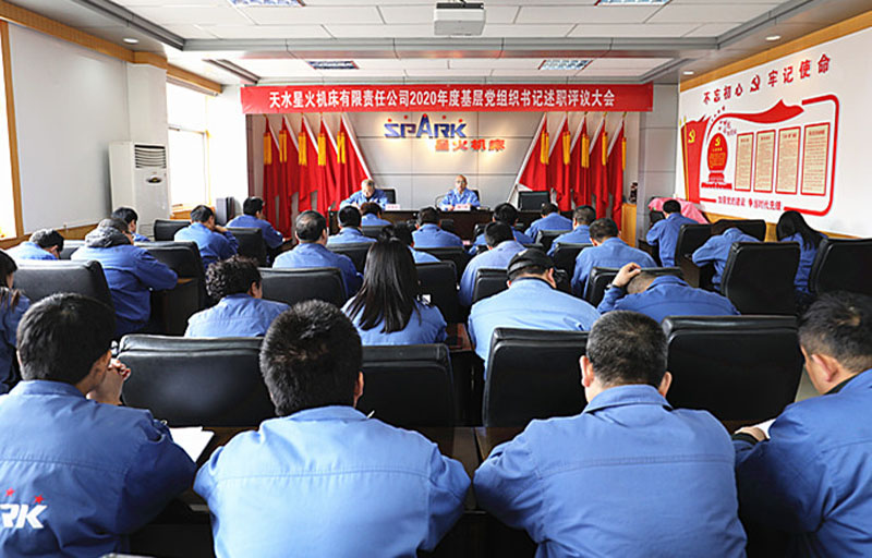 2月22日,星火機床公司黨委召開2020年度黨組織書記述職評議大會。會議聚焦堅持和加強黨的全面領導,貫徹落實中央、中組部和省委組織部以及市委關于基層黨建工作部署要求,履行基層黨建工作責任,以提升組織力為重點,突出政治功能為考核評議重點內容,全面總結了2020年基層黨支部抓黨建工作,交流了黨組織書記抓黨建工作經驗,對標查找了黨建工作的短板弱項,明確了今后工作的思路與措施,安排部署了2021年基層黨組織黨建工作。