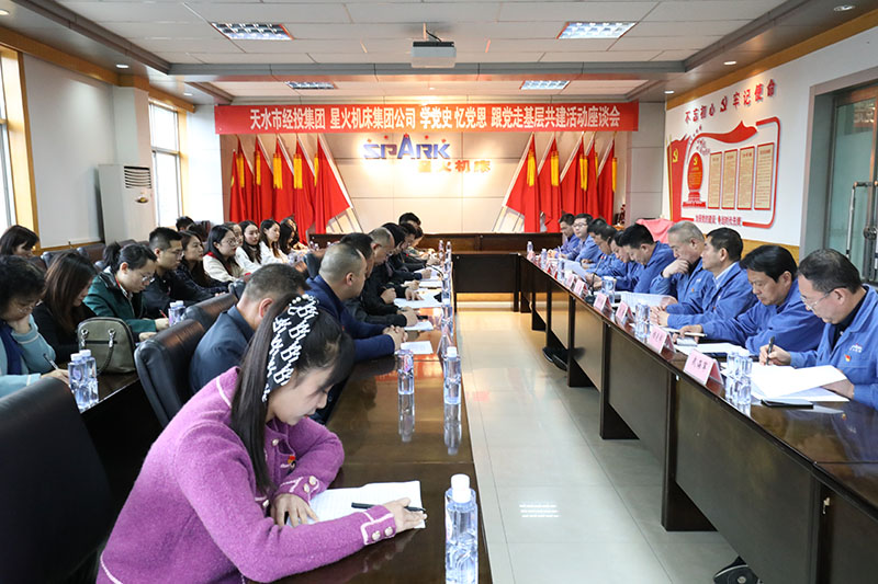 4月23日,天水市經(jīng)濟發(fā)展投融資(集團)有限公司與天水星火機床集團公司聯(lián)合開展的“學黨史、憶黨恩、跟黨走”黨史學習教育互學共促交流活動在星火機床公司舉行。天水市經(jīng)濟發(fā)展投融資(集團)有限公司黨支部書記、董事長楊斌,總經(jīng)理張一龍等領(lǐng)導班子成員,帶領(lǐng)60多名職工組成的“學黨史、憶黨恩、跟黨走”互學共促交流學習團,深入“三線企業(yè)”星火機床公司參觀,學習“三線精神”,感受“三線企業(yè)”職工的工作學習,了解“三線企業(yè)”發(fā)展歷程。星火機床集團公司黨委副書記、總經(jīng)理劉勝,黨委委員、副總經(jīng)理、星火公司總經(jīng)理趙錦銘等領(lǐng)導熱情接待并陪同參觀,進行座談交流。