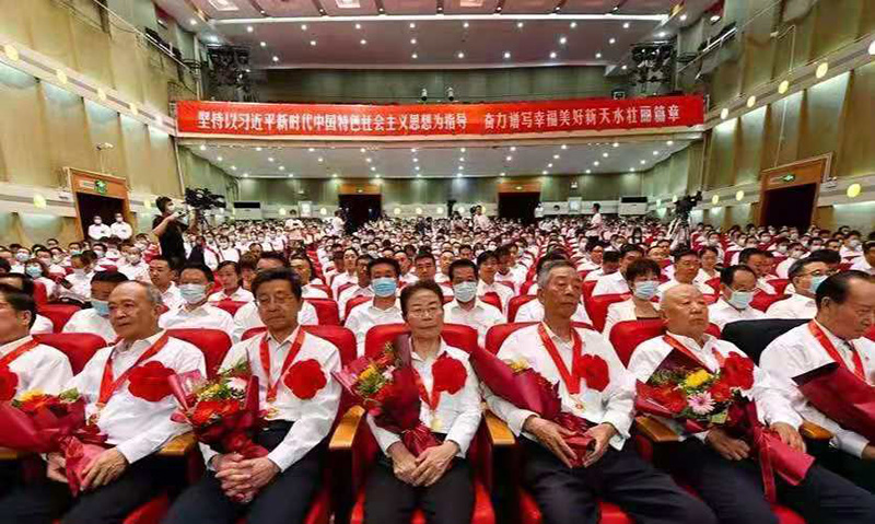 天水市委書記王銳出席大會并講話。市委副書記、市長王國先主持大會。市委副書記楊小平宣讀了《中共天水市委關(guān)于表彰天水市優(yōu)秀共產(chǎn)黨員、優(yōu)秀黨務(wù)工作者和先進基層黨組織的決定》。市領(lǐng)導為“光榮在黨50年”老黨員代表頒發(fā)了紀念章,為受表彰代表頒獎。