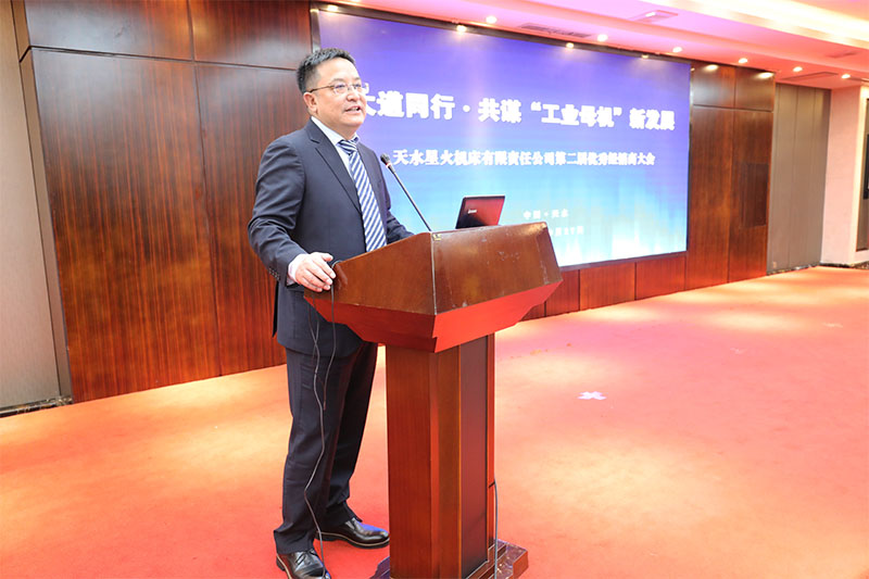 星火機床集團公司黨委書記、董事長蔣保權在大會上致辭,對各位優秀經銷商相聚天水,共謀發展表示熱烈歡迎。他向與會人員介紹了企業基本情況、近兩年發展變化、項目建設和發展規劃后說,企業與經銷商是魚水關系,也是一家人,希望大家攜起手來,共同努力,共同發展。