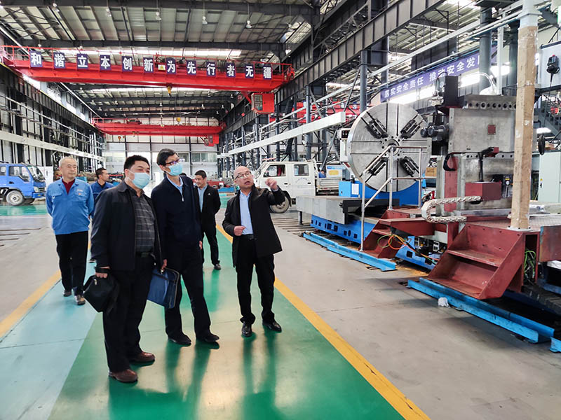 參觀過程中,蔣俊等領導向方旭、魏萬軍一行介紹了公司目前生產經營情況后,陪同參觀了CNCX630五軸車銑復合加工中心、新進的法國高檔加工中心、大型數控斜床身數控車床等產品,觀看了數控纏繞機床介紹資料。