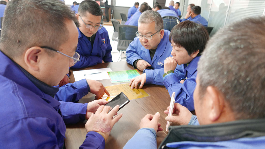28日13:30分,簡短的破冰活動后,培訓老師將參訓人員分組編隊,在充滿豪情的勵志口號聲拉開了拓展培訓的帷幕。通過《商戰》沙盤、《成功之路》《吉塔行星》《模擬聯合國》等一個個精心設計項目的培訓,模擬公司運營中的情景,使參訓人員真正感受了企業經營的不易。面對一個個充滿挑戰的項目,參訓人員全心投入,熱情高漲,用智慧和汗水協力完成了每項挑戰,并分享了培訓感悟。