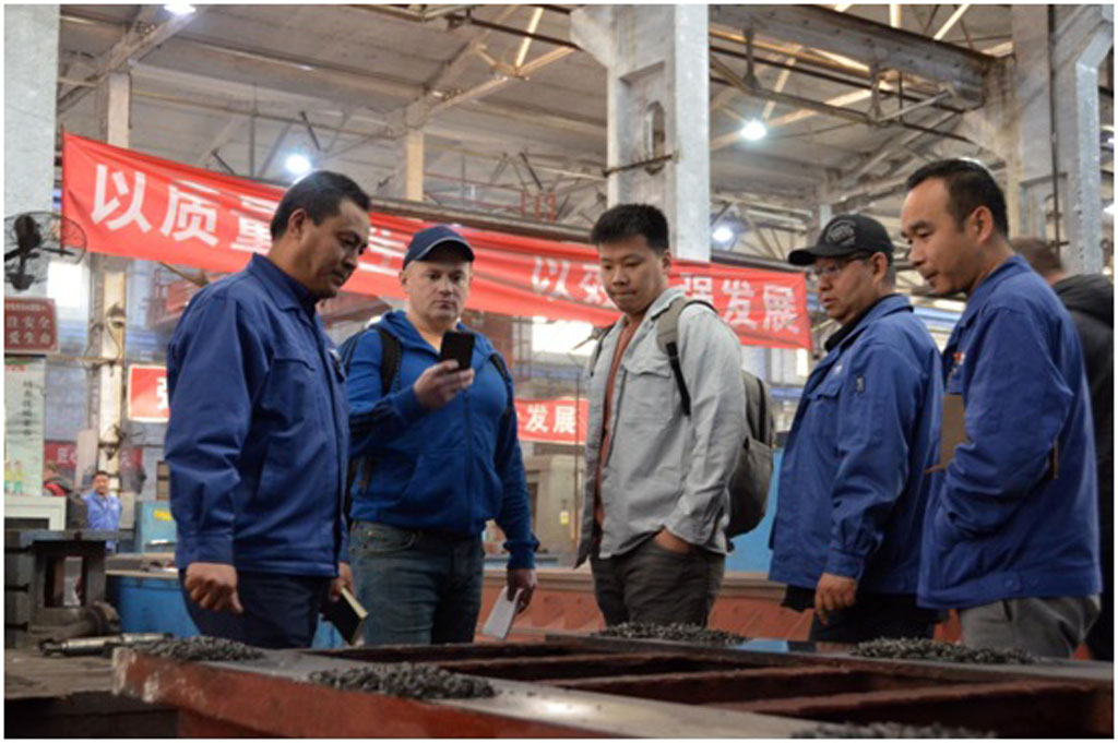 座談結束后,MR.CHENTSOV VADIM一行在銷售部部長何曉東和相關技術人員陪同下參觀了生產車間。據悉,俄羅斯客商此次前來星火公司,主要是考察軋輥磨床產品,并洽談了后續合作事宜。(龍文全 余磊)