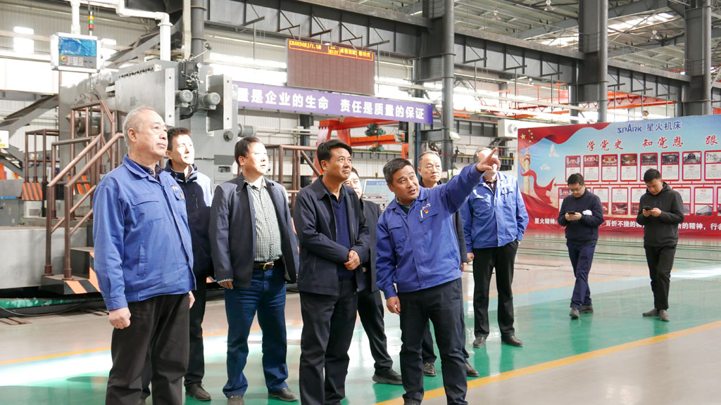 在星火公司裝配生產(chǎn)現(xiàn)場,趙錦銘向趙貴平一行詳細(xì)介紹了企業(yè)生產(chǎn)經(jīng)營、產(chǎn)品研發(fā)、營商環(huán)境等情況,并陪同參觀了公司自主研發(fā)的各類大、重型數(shù)控機(jī)床產(chǎn)品和即將亮相北京國際機(jī)床展會的三臺展機(jī)。
