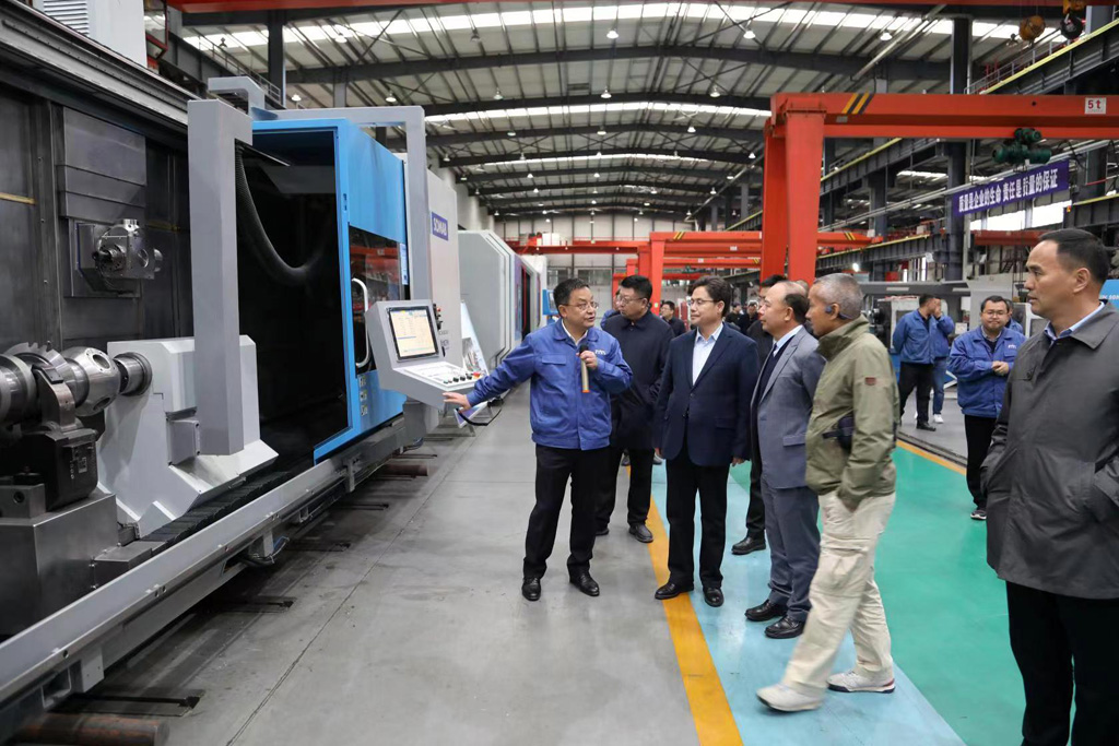 上市公司甘肅投資考察團(tuán)一行深入公司新園區(qū)裝配車間,參觀生產(chǎn)場景和公司特色創(chuàng)新產(chǎn)品,蔣保權(quán)向投資考察團(tuán)一行重點(diǎn)介紹了公司產(chǎn)品技術(shù)創(chuàng)新情況,以及公司自行研制的高端數(shù)控復(fù)合材料纏繞機(jī)床、五軸聯(lián)動(dòng)車銑復(fù)合加工機(jī)床、大型數(shù)控臥式車床及專用機(jī)床等尖端產(chǎn)品的科技創(chuàng)新和應(yīng)用前景等情況。