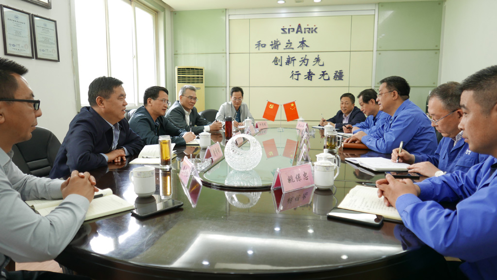 星火機(jī)床集團(tuán)公司副總經(jīng)理趙錦銘,星火公司副總經(jīng)理劉生玉等陪同參觀生產(chǎn)現(xiàn)場并參加座談。
