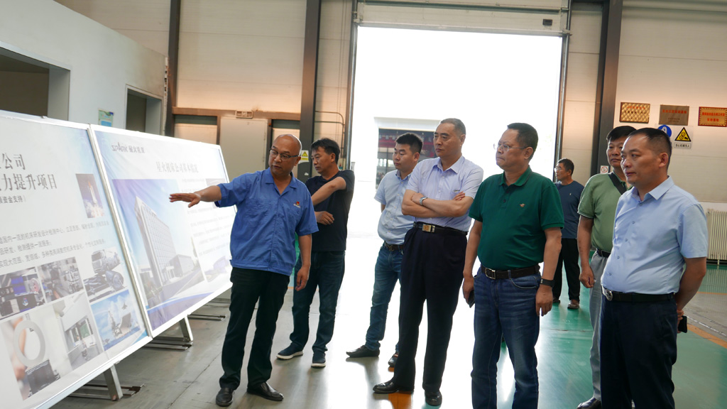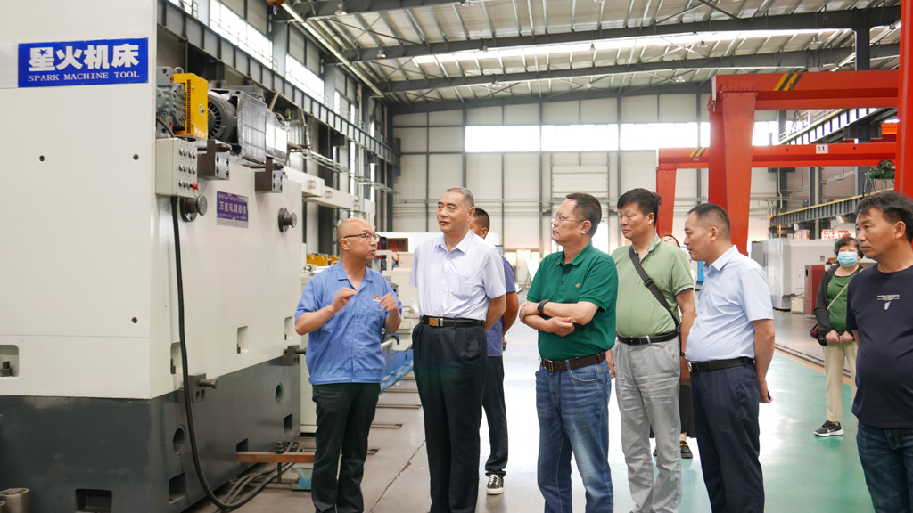 在星火機床公司裝配生產(chǎn)現(xiàn)場,孫昌春一行聽取了集團公司黨委副書記、副總經(jīng)理蔣俊關于公司生產(chǎn)經(jīng)營、產(chǎn)品研發(fā)、科技創(chuàng)新、項目建設及未來發(fā)展規(guī)劃等情況介紹,參觀了公司研發(fā)生產(chǎn)的高端數(shù)控纏繞機床、五軸聯(lián)動機床、數(shù)控斜床身機床等產(chǎn)品,詳細了解了各種產(chǎn)品的應用領域及性能特點。