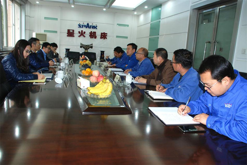 參觀結束后,星火機床公司領導與考察組一行在小會議室進行座談交流。星火機床公司副總經理劉勝歡迎考察組的到來,并簡要介紹了公司情況。他說,星火目前最大的壓力就是債務問題,但是生產經營穩中向好,依然位于行業前列。無論產品的口碑、市場份額,還是銷售形勢、研發能力、員工穩定性等都比較好,我們對企業的前景非常有信心,希望通過進一步了解,開拓合作渠道,將星火的事業發揚光大,實現合作共贏。林曉輝介紹了此行的目的。他說,和星火前期已有較長時間的溝通,我們對星火這樣國家級的重大裝備制造企業非常感興趣,星火有深厚的制造文化,有扎實的制造基礎,有雄厚的技術實力,這次主要對企業債權債務、生產經營、產品研發能力、主要業務等進行實地考察,了解公司主要領導發展思路,為進一步合作提供主要依據。林曉輝表示,將用四天時間,與星火機床公司相關業務部門進行對接,深入了解相關情況。肖麗霞