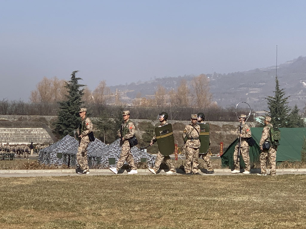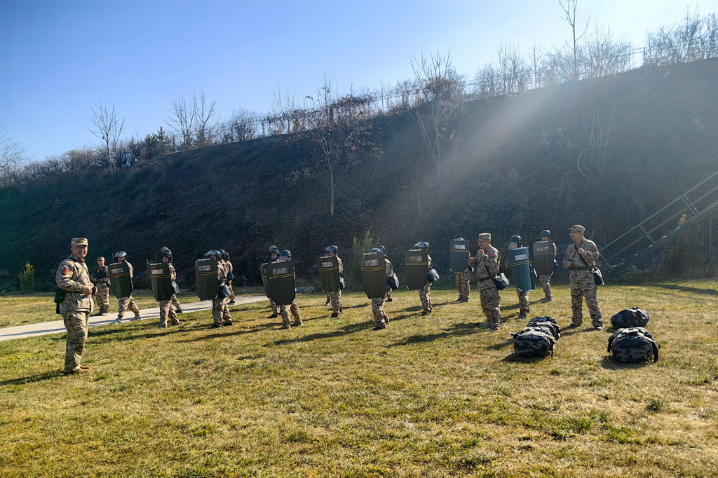 此次集訓圍繞“急時應急、戰(zhàn)時應戰(zhàn)”設置訓練科目,重點圍繞緊急集合、防暴戰(zhàn)術、警棍盾牌使用,以及應急救護、武裝越野、野外障礙設置、營地搭建等演練科目展開。