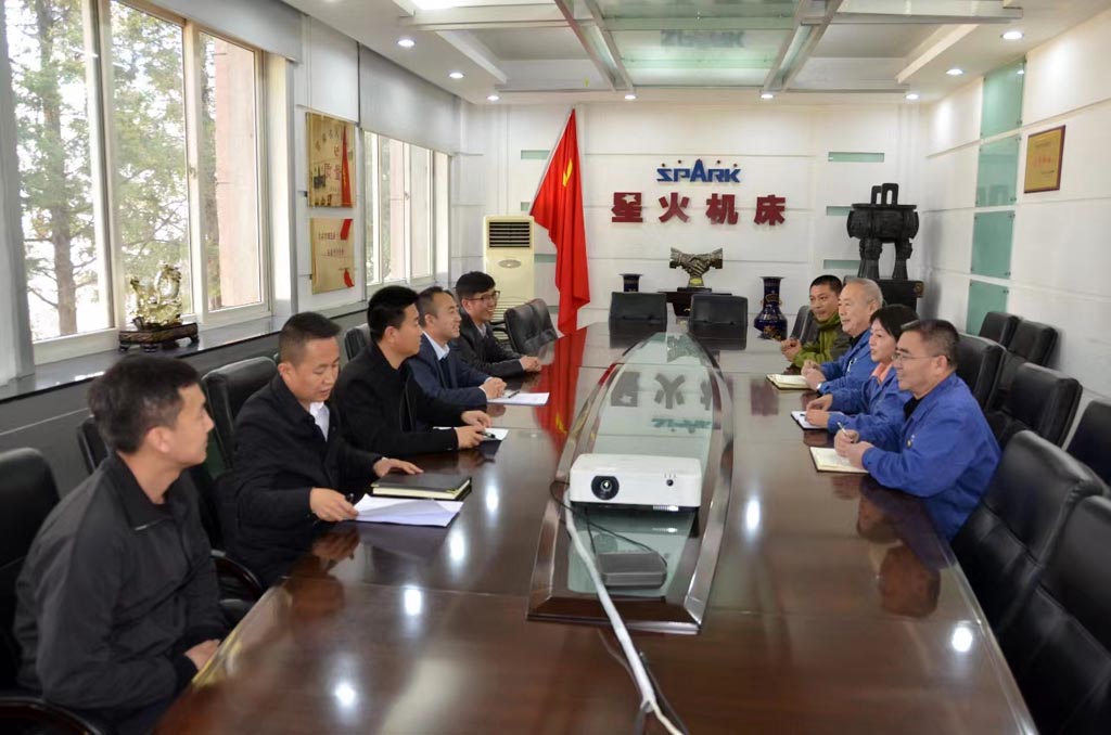 星火機床公司總經(jīng)理趙錦銘,黨群工作部部長蔡建欣、副部長馬存福,公司駐村幫扶干部王璟等與清水縣領(lǐng)導座談。