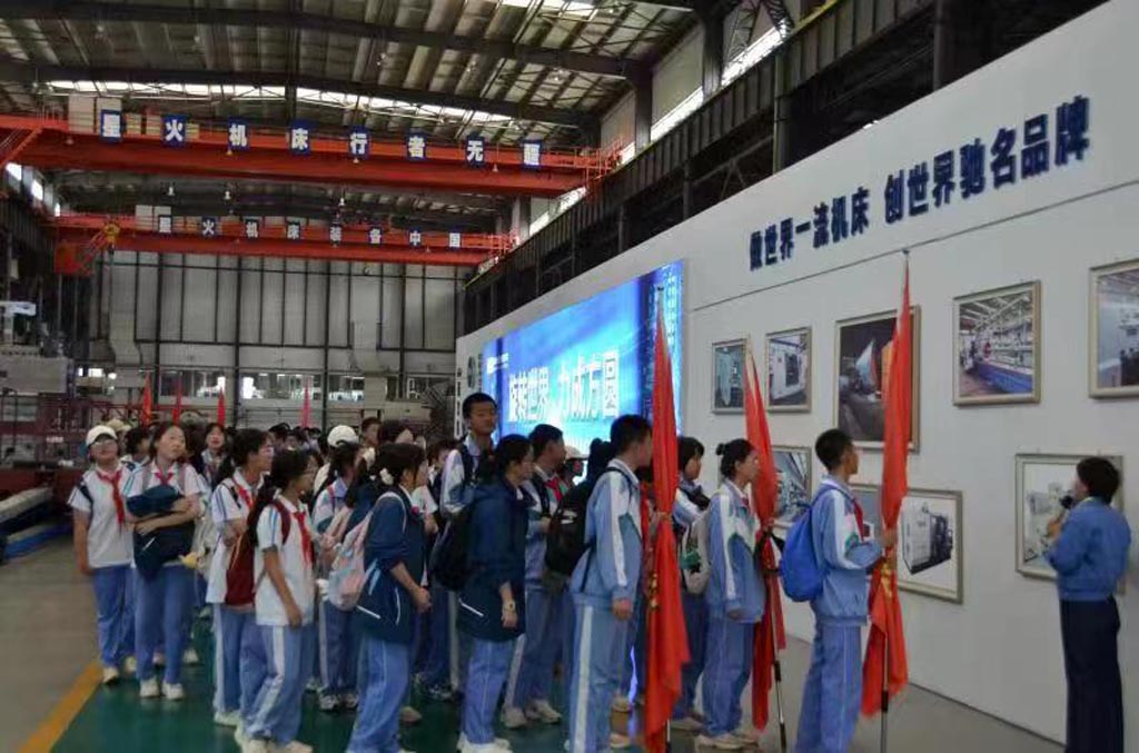下午2點,打著校旗參加遠足拉練主題活動的同學,列隊走進星火機床公司工業園廠區。星火機床公司黨群工作部部長蔡建欣代表公司對老師和同學們的到來表示歡迎,并向老師和同學們介紹了星火機床公司歷史沿革、發展變化、企業文化及主要產品,并強調了安全注意事項。希望大家通過實地參觀,切身感受星火企業文化氛圍,了解科技創新和裝備制造業的進步。