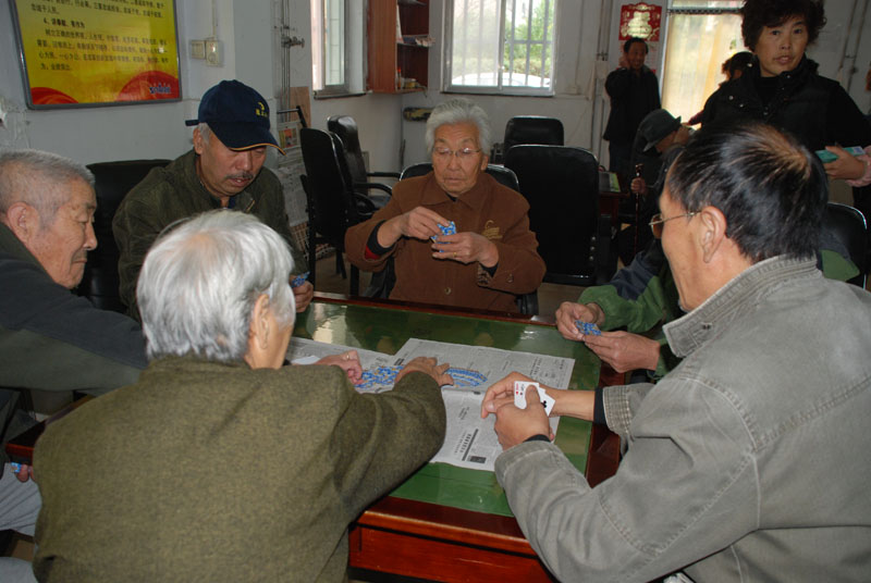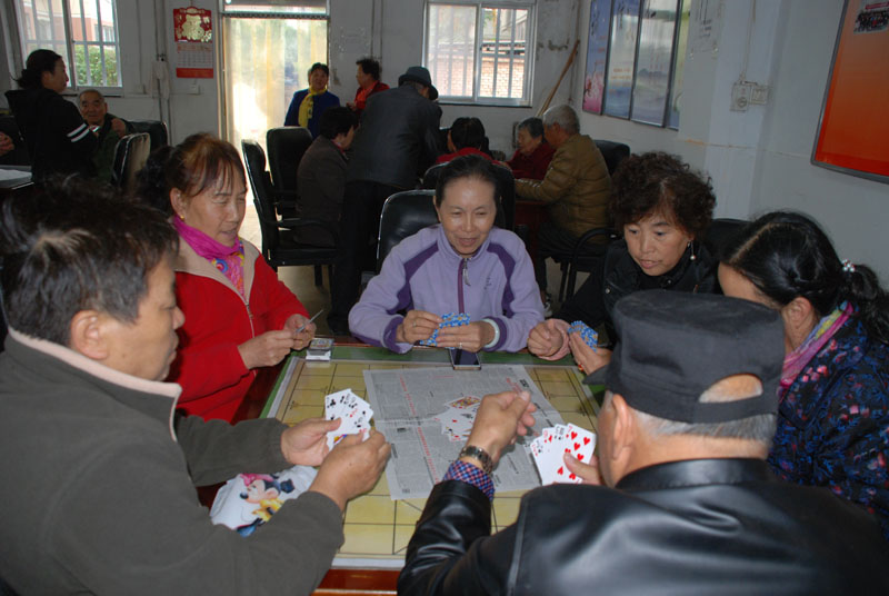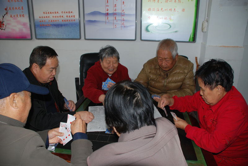 星火機(jī)床公司退休支部書記石文敏宣布比賽規(guī)則后,老職工三人一組,開始比賽。比賽一局定輸贏,凡是參加活動的,都有紀(jì)念品。活動現(xiàn)場,人來人往,非常熱鬧,四張比賽桌座無虛席,圍觀的人比參賽的人還要多,比賽現(xiàn)場不時(shí)傳來歡快的笑聲。