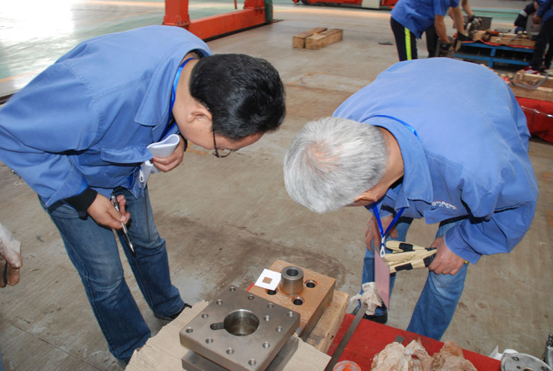 參賽選手在進行了理論考試后,在星火機床公司數控裝配分廠進行3個小時的實際操作考試。35名起重裝卸機械操作工(天車工)比賽理論考試于前一天晚上在公司教培中心進行完畢,當天上午8點30分同時在星火機床公司數控裝配分廠進行了實際操作考試。