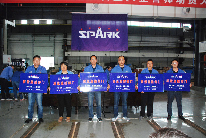 5月5日,星火公司召開“星火興亡,我的責(zé)任”質(zhì)量興企誓師動員大會。星火集團(tuán)及星火機(jī)床公司領(lǐng)導(dǎo)蔣保權(quán)、劉勝、趙錦銘、鞠家兵、劉生玉、劉強(qiáng)、展海瑜,各處室領(lǐng)導(dǎo)、各分廠領(lǐng)導(dǎo)、班組長等骨干人員、計(jì)量檢查處全體員工240余人參加大會。星火集團(tuán)黨委副書記、副總經(jīng)理蔣俊主持會議。